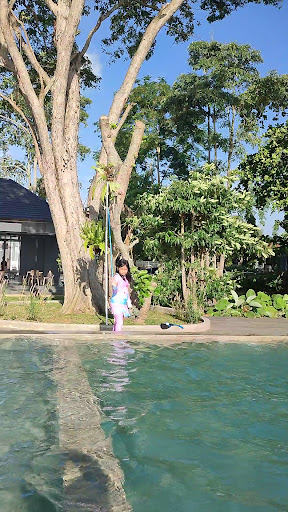 Resort ini, yang sepertinya mengusung konsep villa ala Bali, relatif baru bahkan mungkin belum grand opening. Kami menginap di cabin deluxe yang luas dan nyaman dengan fasilitas kamar yang cukup lengkap dimana tersedia sofa bed yang muat untuk 2 anak kecil, AC, wifi, TV digital bisa YT, dan toilet semi outdoor yang estetik lengkap dengan air panas dan perlengkapan kamar mandi seperti handuk, bathmat, dental kit, shop dispenser dan juga ada slippers. Kami bayar tidak sampai 700k/malam.