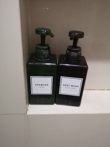 Kamar lumayan spacious, bersih jugaa. Cakep & nyaman pol. Udah dapet fasilitas yg hampir sama kaya hotel, bahkan di kamar jg ada kulkas mini, TV android, & dispenser air🥹👍🏻. Disediain kopi & teh jugaa. Cuma memang dispenser air panasnya lagi rusak kayanya(?), tp bisa masak air sendiri ke dapurnya kalo memang butuh.