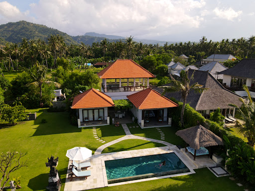 We arrived for a 16-night stay at a spacious villa, depicting extravagantly manicured grounds on a black sand beach. The villa arranged for our transportation to and from Bali with an excellent driver and new vehicle!