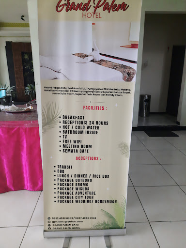 Β Β Β Read morePertama sekali menginap di sini karena di tentukan dari travel sendiri.. Tapi saya dengar bahwa hotel ini beberapa kali memenangkan Hotel terbaik dan terbesar di kota Batu ππ Udara di Hotel ini memang dingin ya π Jadi di kamar tanpa AC pun sudah dingin.. Kamarnya luas dan di dalam kamar di sediakan 3 tempat tidur single.. Karena kami ada 3 orang jadi kami bisa tidur masingΒ² di tempat tidur kami.. Sebelum rebahan yang saya lihat terlebih dahulu adalah kebersihan kasur,apa ada kutu atau serangga yang nempel di kasur..tapi untungnya kasurnya bersih dan bantal juga wangi ππ Kamar mandinya luas tapi kamar mandi ini di sediakan ember buat nampung air dan gayung buat mandi π Baru pertama kali ke Hotel nemuin yang begini.. Di sini ada air panasnya,jadi sangat cocok buat badan kita yang habis lelah naik gunung dan sedang di udara dingin bisa mandi air hangat di Hotel ini ππ Dapat 2 botol kecil air mineral.. Cuma Handuk aja yang buat kita geli,karena handuk yang di sediakan bukanlah Handuk untuk mandi hanya handuk kecil buat lap wajah βπ, syukurnya saya yang bawa handuk dari rumah bisa saya gunakan saat selesai mandi.. Colokan listrik hanya 1 yang di pake untuk colokan TV,jadi usahakan bawa colokan tambahan ( Steker colokan universal )yang panjang yang punya beberapa colokan sekaligus agar bisa kamu gunakan untuk mengecas hp dan power bank secara bersamaan πππ Tidur nyenyak karena sudah kecapean banget apalagi suhu kamar adem walau tanpa AC. Menu sarapan standart ya,tidak banyak pilihan, karena hanya ada Nasi goreng, Nasi Putih , Mie Goreng , Soup kol , Perkedel Tahu ( tidak enak, rasa kurang , agak asam ) , krupuk dan sambal β Pilihan minuman breakfastnya hanya ada Kopi , Teh , jus jeruk dan air putih.. Depan lokasi hotel banyak tempat nongkrong ya. Parkirannya luas untuk ukuran 2bus dan ada parkiran bawah juga yang langsung depan kamar π Kalau menurut saya Hotel ini Recomend untuk kamu yang mau menginap di daerah Malang kota...