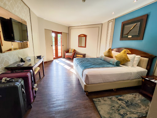 The Room The view was wonderful, you could see the volcano in the distance when the clouds cleared and the beach. The location of the balcony was on the corner so it felt really private and was obscured from view by most passers by by the frangipani trees below. My partner thought the room was a bit dated but I personally liked it. It was very spacious and we liked that it had a bathroom and a separate ensuite.
