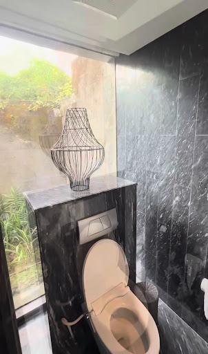 The villa itself was luxurious, featuring an outdoor glass-walled shower, a private pool with a Jacuzzi that has a small roof above it, and plenty of space to relax. Outside, there was a large daybed and two sun loungers — perfect for unwinding in privacy.