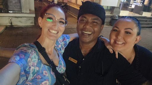 and the omelette as well. The dinner was also incredible especially the satay its the best satay ive had and its so good that we didn't eat out the whole time we where there we just ate at the hotel its that good. The service was some of the best ive had especially the server named Ayu, she was incredible possibly the best server ive ever had she was so nice and accommodating and very hands on. My nephews loved her and would go up to her for cuddles everyday. She has a good memory as well as there was 9 of us and she could remember what we ordered without looking at the sheet. The hotel is walking distance from many things which is a bonus but its also right on the busy streets.