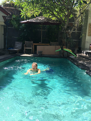 Read moreWe stayed here for the last 17 days of our month long trip and feel that we have finally found the perfect place for us. The accommodation is family owned and run,and there is 8 rooms. 4 upstairs and 4 downstairs. All rooms face out onto the medium size pool so they all have a balcony with chairs. The pool is very easy to access and not very deep ( I’m just on 5ft and could stand up in the deep end). The pool was well maintained and very cool on hot days. The rooms are basic but very comfortable, with a very comfortable bed, air conditioner and private bathroom with a great shower . There is a room safe and Bar fridge . There was a TV but there was a problem with the antenna when we were there. The owners are very friendly and welcoming and they are very willing to help you. No breakfast or restaurant but the accommodations are located about 10 minutes walk away from Legian Food Court so no issues. There is excellent dining, laundry and shopping options nearby too. The complex is very quiet and relaxing. There are several residential dogs, some budgies and even a tank of fish. The room was...