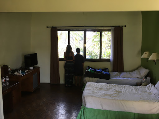 The hotels location is far away from the beach and very noisy due to traffic noises from a very busy road which leads to a highway. It’s like being close to a motorbike racing track, that noisy it is. Particularly in the rooms of the main building one only can sleep with ear-plugs. The so-called villa-rooms are a bit quieter but very dark, almost like a cave and there you have to deal with plenty of co-inhabitants (lizards, lots of all kind of insects, particularly mosquitos and termites and… even rats). Mosquito fogging and general pest control doesn’t happen here neither.