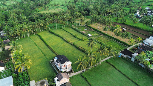 At Sukry’s place you stay in the middle of beautiful green nature, right next to the ricefields. The room is very clean and modern. We especially loved the bathroom with the stones, very stylish!