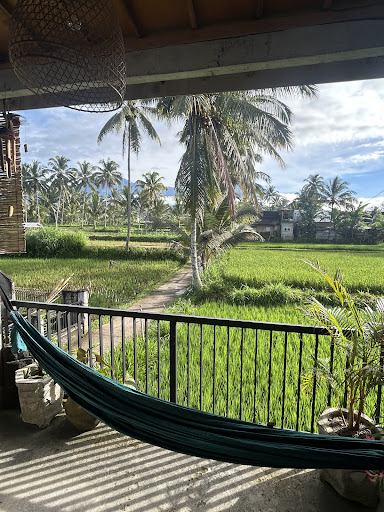 This is a beautiful property with a room that has a comfortable bed, AC, and large bathroom. The highlight is the beautiful private terrace overlooking rice fields. I did yoga and spent a lot of time on the hammock here during our stay. The best part of this homestay is the host family. Sukry, his sisters and mother go above and beyond in ensuring you are having a great time. The dinners here were amazing, some of the best food we had in Indonesia and the breakfast is delicious and filling. It was home cooked food packed with flavor. We did a rice fields, monkey forest and waterfall tour with Sukry which was really fun - it was great to learn about all the different kinds of local produce grown here and explore the nature around. Sukry also organized our transportation to Tetebatu from Bangsal Pier and from Tetebatu to Kuta Lombok at very reasonable prices and also organized e-bikes for us to rent.
