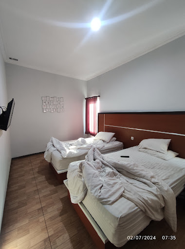Minus : Kebersihan kamar, jadi sepertinya petugasnya gak bersihin kamar nih, cuma ngerapihin aja.. Kronologinya gini, saya cek in malam sehabis isya, saya dpt kamar no 1. Setelah masuk kamar saya liat kasurnya dalam keadaan rapih, tapi ada beberapa helai rambut yg panjang ada di kasur, trs kamar mandinya kok masih basah dan kotor banget ubinnya, bukan kotor karna jamur ya tapi kotor karna alas kaki, atau kaki yg kotor. Yang lebih parahnya lagi toiletnya masih ada bekas pub yang gak disiram... Fatal banget sih ini kok bsa petugasnya gak ngecek! Lalu saya komplain lah ke resepsionis dia bilangnya kamar dibersihkan, dibersihkan apanya kok bekas pub gak disiram, akhirnya saya minta pindah kamar, pindah lah saya ke kamar nomor 10, setelah masuk saya lihat kamar mandinya oke kering, ada kecoa kecil tapi gak masalah buat saya. Tapi sabun mandinya habis, kok bisa gak diisi? Trs pas saya mau bikin kopi, lah kok teko pemanas airnya masih ada air separo...lagi2 petugasnya gak ngebersihin kamar ini, cuma ngerapih kasur aja menurut saya.