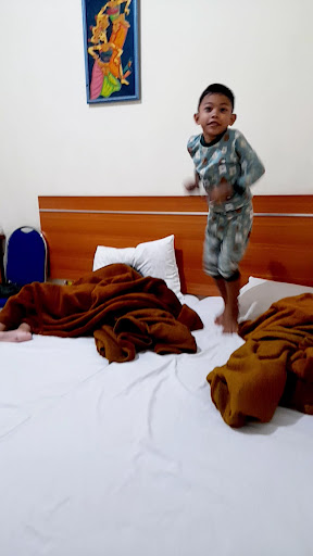 Kamar Pesen kamar deluxe king, tp kasurnya ternyata singel digabung.. gk terlalu berasa sih di tengah nya Lumayan sempit ya kamarnya Kondisi kamar lumayan bersih walaupun saya tetap lap lap pakai kanebo + cairan pel lantai spy lebih bersih dari debu Untuk Makanan = Ada Meja, Kursi, 2 Gelas Mug, Nampan dan Teko Air Panas (bukan teko listrik yaaa, jadi kita ambil dulu air panasnya pindah ke teko terus bawa ke kamar) Untuk Pakaian = Ada meja rias, cermin, lemari dan jemuran kecil yg cukup buat tamu 2 orang AC nyala dan dingin (daerah sini udh gk dingin ya, jadi AC wajib ada) Air panas gk nyala waktu sore sampai malam, tp pagi jam 9 an sudah ada, mungkin habis dari tempat penampungannya Air Kran sempat mati waktu malam, lgsg komplain dan lgsg ditangani jadi waktu pagi sdh normal