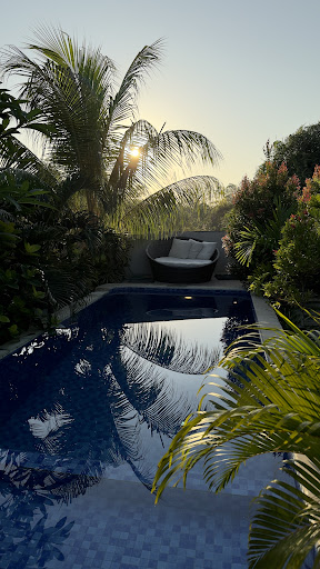 Read moreCe petit hôtel de seulement 3 chambres avec un jardin et une piscine au milieu est très charmant, la propriétaire attentionnée et disponible. -Les chambres sont simples et ont le nécessaire pour un confort optimal (literie de Bonne qualité, climatisation, sdb) cependant pas de mini frigo ni de coffre. -l'emplacement est bien pour visiter l'île mais il faut tout de même être motorisé pour être autonome,la Proprio propose une location de motobike ce que nous avons fait lors de notre séjour. -le pt négatif est le petit déjeuner inclus qui est vraiment moyen selon moi: une tranche de 4lain deie blanc avec confiture industrielle (-) Un banana pancake cool mais accompagné d'un miel -sucrant- industriel pas bon hyper sucré (-) , jus du commerce hyper sucré industriel (-) (pas de fruits frais pressé) , une petite salade de fruits et un café complètement...