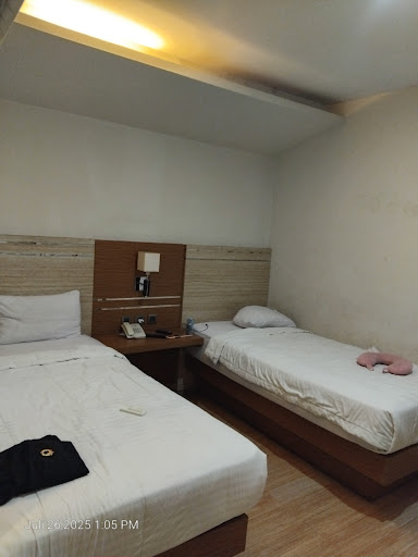 Critics : kamar : seharusnya bisa bagus dan mewah hanya saja tidak dipelihara dengan baik, lampu kamar mandi rusak (redup), langit2 atas wastafel bocor dan berjamur, sprei, selimut dan sarung bantal seperti sudah usang, berlubang dan tdk dibleeching atau mgkn sdh waktunya diganti, gorden dan cover lampu perlu diperbaiki dan dibersihkan, sakelar juga perlu diganti, kamar perlu pewangi karena ada aroma AC kotor. kamar yang berhadapan dengan jalan raya sangat bising kendaraan lalu lalang. dinding kamar kotor banyak bekas cipratan cairan. suara berdecit tempat tidur dan pintu kamar mandi saat digunakan, agak menghawatirkan.