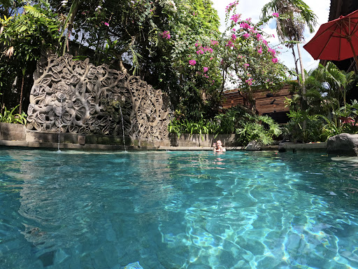 Read moreA friend and I stayed here for two weeks. We picked it as it was smack in the centre of Monkey Forest Road, had a pool, air con in the rooms, a restaurant and a spa.||It was absolutely perfect - the rooms aren't huge, but they have everything needed - a fridge, bath, separate shower and toilet, kettle, coffee and tea, toiletries and balconies. We stayed at a room at the rear and were really impressed at how quiet it was, given that we were in the heart of Ubud on one of the busiest streets. ||The room rate included a fabulous breakfast which has both western (bircher, waffles, eggs) and local choices (nasi goreng), as well as balinese coffee or a regular cappuccino, and fresh juices. The breakfast can be delivered to the room to have on the balcony, which was great, but the breakfast in the restaurant included a really tasty bubur (rice porridge - like a congee) with sides, which was really delicious. ||The restaurant has a pretty good menu - not huge but enough to choice from if you didn't feel like venturing out - a soto ayam, which was great, as well as a burger. there were also some great desserts, including a fabulous pisang goreng (fried banana) and dadar gulung (crepes with grated coconut).||The staff were exceptionally friendly and attentive, always happy to bring food of drinks to the room, and greeting us on our return from a day out.||The pool was fantastic - a couple of reviews indicated the pool was cool, but on a really hot day, who wants to be in a warm pool? The pool had a natural shape and was in dappled sunlight most of the day thanks to the frangipanis and palm trees surrounding it, so you could spend quality time in the pool without getting sunburned.||The spa was great - lovely staff, well priced and air conditioned rooms. We had a number of treatments and they were amazing. ||There was a mart just up the road and Guardian pharmacy close by, so everything needed was...