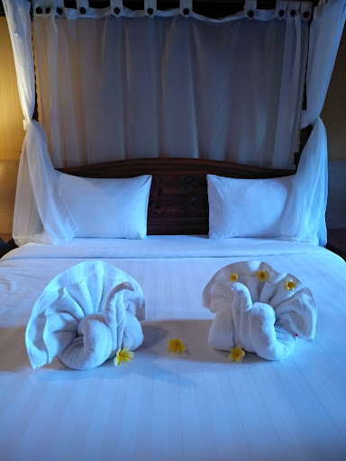 Read moreL'hôtel pratique le surbooking, donc à notre arrivée vers 17h, sans vraiment d'explications et aucune excuse, on nous a fait monter sur des scooters pour nous emmener à un autre hôtel (Uma Sari Cottages, parfait lui) en nous disant de revenir le lendemain (nous avions réservé 2 nuits)... très agréable.||A notre "seconde arrivée" il a fallu nous énerver un peu pour obtenir excuses et dédommagement, soit un surclassement en "luxe". ||Certes joli mobilier, belle terrasse ; mais les chambres sont tout bonnement dégueulasses (en cherchant une prise je suis tombée sur un cimetière d'insectes), une partie des murs est couverte d'une moisissure verte, une colonie de fourmis avait élue domicile dans nos draps et ceux-ci n'avaient visiblement et olfactivement pas été changés depuis longtemps... Répugnant, je n’ose imaginer les standards ! Et seulement 2 transats autour de la piscine pour se remettre de cela.||Le summum fut un homme se disant être le gérant mais aussi guide touristique, qui pour se rattraper du surbooking, s’est proposé d’assurer lui-même le circuit que nous voulions faire le lendemain. Sauf qu’il n’a pas cessé de nous détailler ma sœur et moi (très désagréable, limite dérangeant) ; et surtout il a passé sa journée à essayer de récupérer d’une main ce qu’il nous avait donné de l’autre. Ainsi, sans rien avoir demandé, il nous a emmené au retour à Ubud dans un bureau de sa connaissance pour que nous y prenions nos tickets de fast boat pour Lombok à très bon prix… soit 1 300 000 IDR ! Sauf que nous avions déjà pris des renseignements… Ce fut la goutte d’eau, nous avons donc négocié sans ménagement pour obtenir le prix normal à cette saison 500 000 IDR A/R en open ticket. Après cela curieusement, plus de « mes amis » ni d’ailleurs de sourires mielleux… !||Et bien sûr, le lendemain pas de petit dèj à notre départ vers 7h, malgré les promesses faites la veille.||Bref, le pire endroit et la pire rencontre de nos...