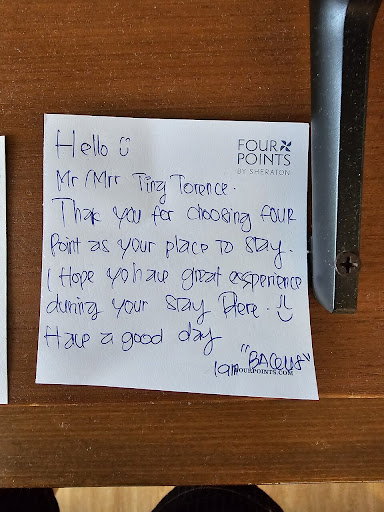 Read moreWe stayed very recently and have already provided some direct feedback to the hotel which has been responded to but for others, this was our experience. The hotel is a little bit out of the way from the street shopping although it not a very long walk the roads are not wide so I was a bit too worried to walk on the side of the road with cars whizzing past. Check in we got a delightful young fellow who was very friendly and went out of his way to explain the breakfast arrangements and show us to our rooms. My mum has mobility challenges and the staff were absolutely amazing helping her out. We only ate at the restaurant behind the reception desk and didn't try out the rooftop option (there was a function there for the last few days of our stay and it was closed to everyone else). We found the food to be great. There was a sort of snack buffet put out in the afternoons but we never could work out how to access/pay for this or if it was only for people on some sort of package or something like that? We found the servers to be very friendly, one particular young man was genuinely the sweetest and most helpful of any service I have ever got in a restaurant. The room on the other hand was fairly ordinary. Not dirty or messy but the aircon was not very cold and fridge was hardly operating at all - we put water bottles in there that we brought along and somehow they were warmer for being in the fridge than out! The neighbours were noisy as hell late into the night with a mother yelling at her kids. There was no escaping because any noise in that room sounded loud like we were in the room with them, but when they were in the corridor outside the door it was somehow even worse with an echo. We had some water dripping out of the ceiling under the airconditioner in the afternoon of our last night which we thought was just some condensation but at 1:30am I woke to water almost pouring out of the roof and forming a deep puddle with the flooding starting to go under the connecting door to the neighbouring room. I went to the front reception who got a maintenance person to come and fix (took about 45min) which obviously kept us awake. They left the floor fairly wet afterwards which I had to clean up with towels or it was slippery. The main issue I had with the leaking ceiling (which was apparently something blocked in the aircon unit) was the complete lack of apology by the management. The reception staff sort of said "we are sorry you are upset" but I think an issue the magnitude of this which really disrupted our sleep should warrant an apology as soon as possible and definitely before we left the place. I did not want reparations or compensations just a genuine apology. I did receive an apology after my return home via email after I was slightly savage on the online feedback system. Leave an issue like this un-addressed suggests to me a complete lack of professionalism which is not what I would have expected from a Marriott Hotel. Maybe we had high expectations because our travel agent gave fabulous feedback on this hotel but we were bitterly disappointed and I think most seasoned travellers would not enjoy this place at all which is sad because it has wonderful potential. I gave a 3 star review because the staff at the coalface were really delightful and helpful, the hotel itself would have got a 1 star review without their hard work. I am not usually a person prone to negative feedback but this stay made me sad and...