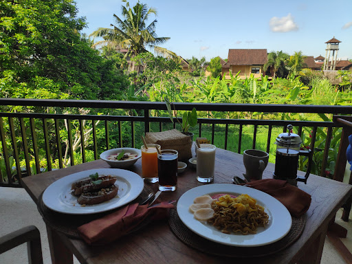 Read moreLocated bang in the center of Ubud amidst lush paddy fields, we felt right at home. The welcome was great, the staff ever so cordial and always warm. The ambience instills calmness, there is greenery everywhere you turn that yo forget that you just entered from a bustling street, it is well shielded from the noise yet a stones throw away from all the major ubud attractions. The rooms were generous, a beautiful view of the paddy fields where we could spot some munias trying to pick at the grains and a great balcony with our very own koi pond which excited my kid to no end. In addition, the staff had provided a crib for my child as well, no complaints there at all.|The pool was well-maintained, surroundings calm again. ||We had opted for breakfast in the hotel and that's the only thing that was disappointing. They had hardly any options for vegetarians or vegans. It was just 2 or 3, nothing that could fill you up sufficiently for the adventure ahead. This is tedious especially when you're staying for more than two days. We ate the same thing every morning which was either fruit bowl or fried rice, even the bread had eggs so we couldn't have the avo toast which otherwise could have been a good option for vegetarians (which doesn't include egg) or vegans. I'm surprised, considering that Ubud is steeped in Veganism they had very few options for us. This is something they need to look into and become more inclusive in their menu, especially with breakfasts since most opt for it. ||This is a great place to stay in if you want to be at walkable distance from the monkey forest, ubud palace, the market, some great restos etc., and if you are able to deal with the...