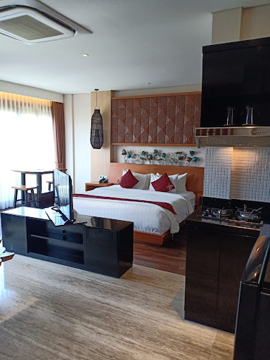The parking space only fits for 2 cars and some bikes, and I recommend you to enter by facing the pathway with the back of your car first. Trust me, it would ease you to park your vehicle. The location is strategic enough without compensating with noise and crowd. Overall, this would be a good experience for staying in Bali and I recommend you guys to book a room here. Thank you for their best effort in giving service in such a hard pandemic situation. Keep up the good work!