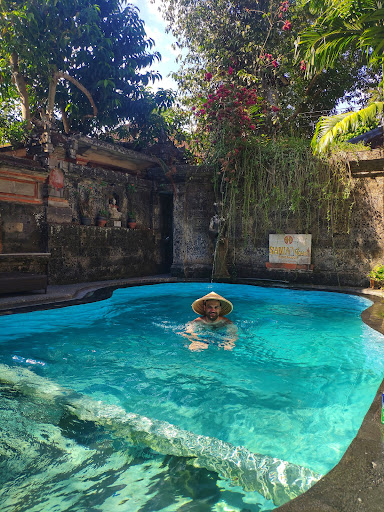 Great location in central Ubud, near the markets which are bustling during the day but are dead silent at night. The outside area is very beautiful and authentic. We had hot water and decent shower pressure. Cheap, we paid £14 a night for bed & breakfast (we didn’t try the breakfast as we wanted to vacate our room as early as possible)