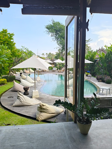We truly loved our stay at Spaces Bali — it felt like stumbling upon a secret haven tucked away in nature. The open design of the hotel is refreshing and beautifully calming. One of our favorite spots was the open dining area that overlooks the serene pool and stretches out to a vast green landscape beyond — absolutely stunning!