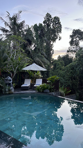 The bathroom is very big & sectioned well. They also provide bathrobe and tv. All the facilities are well maintained. Very family friendly. 1 km to the ubud main road, so its still quite yet near the main tourist spots.
