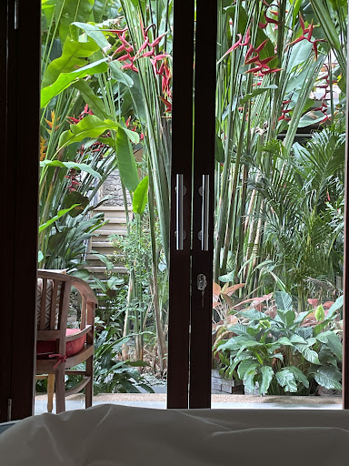 There is lush vegetation and flowers everywhere in the courtyard. It was so nice to sit on my patio in the mornings and have breakfast while looking at birds of paradise and enjoying the early morning sun. The rooms are simple, clean, new, spacious and very private. The only thing I could have asked for was a bit more water pressure in the shower, but the shower itself was cool: it had stones and a waterfall shower-head. Toiletries were minimal, so I'm glad I brought the things I like. That said, there is a supermarket right down the street so you could literally buy anything you could possibly need (or might have forgotten). Novika was even so kind as to loan me an electrical converter until I could go buy one of my own! They also have a water dispenser so I was able to stay hydrated.