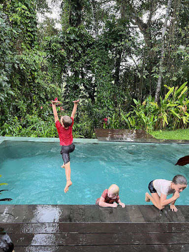 What an amazing place. Our family travels extensively, and this is a house I wish we could stay for a whole year; unfortunately we stayed only 2 months. The view from the deck is just mind-blowing, and everything in the house reflects the standards of a 5-star resort. Our kids are attending Wood School, so for us it was particularly helpful as it's only a 4-min drive to the school. On the other hand, my wife and I drove our scooter to Ubud's center everyday, and it's a pleasant, short 12-min ride. It's also pretty easy to order food from Grab and GoJek and to order cars. I cannot recommend this place enough. Authentic Ubud experience with all the...