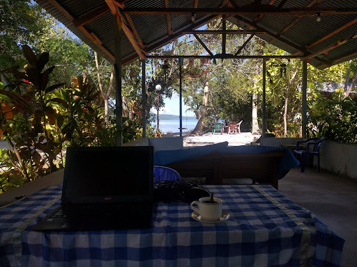 Saparua is a truly great and largely undiscovered destination, and this lodge is a great place to stay. Situated behind a mangrove (with part of the lodge giving an open view to the sea and wonderful sunsets), this place consists of several small bungalows around a wonderful garden with coconut palms and a pool. At the back of the complex is an old nutmeg and clove plantation. Through the lodge, you can arrange to dive in the area at very affordable prices (do note, however, that the local diving instructor observes the Sunday, fair warning). Right from the pier next to the lodge, one can also do some pretty decent snorkeling (even on Sunday) - the reef is at swimming distance and quite pristine. The family that runs this place is very kind, helpful and relaxed, serves the most wonderful food (breakfast and dinner is included in the rates, and a nice and affordable lunch can be provided on request), and speaks good English. While I recognize that some of the older fan-only rooms are due for some renovation (there are, however, also newer ones with airco) they are tidy and atmospheric, and this does little to diminish the fact that this place is an unrecognized gem, well worth your speed boat...