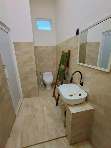 Untuk bangunan guest house sepertinya masih baru, kamar bersih, kamar mandi luas dan cukup bersih. Ada AC, android TV, kemarin pesan yang twin dan kasur twinnya cukup luas. Minusnya ada debu/kotoran di pojok-pojok kamar mandi. Tidak banyak sebenarnya, tapi lebih baik kalau nggak ada 🙏🏻. Mungkin bisa dibersihkan dulu sebelum ada yang mau menginap. Di bawah lemari baju juga terlihat debu-debu. Semoga bisa dibersihkan juga ya 🙏🏻. Oiya suara dari kamar yang bersebelahan juga masih terdengar. Ada mini playground dan lapangan basket.