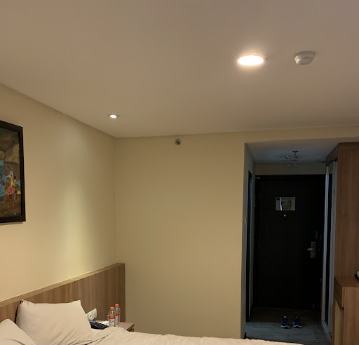 The room was okay. It had small balcony. All of the lamps were not bright enough, just dim. It’s really annoying not having even just one lamp that’s bright. Even so in the hallway. It’s a big hallway, and with dim lights, it felt kind of spooky. The bed was not clean. Not really that dirty, but there were obvious dirt spots.