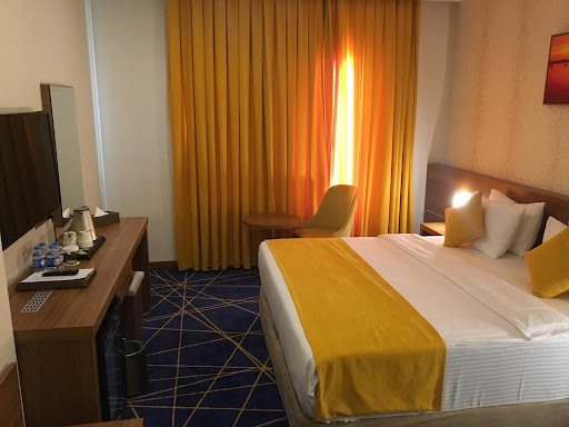 I stay at this hotel and was pleasantly surprised. ||Reasonably new and well furnished. It is sitting a little bit on the outskirt of town but very close to the airport. ||Breakfast was included. Excellent WiFI. ||The window has double glazing to reduce both the noise and keep the room at a reasonable temperature with the help of air conditioning.||Its restaurant had a god variety of dishes to meet all different palates.||The staff was very friendly an most obliging. ||They have a small parking available as well as armed guard. ||The down side for me was not having access to international English speaking news channels. They did even had AlJazeera.||Another annoying feature is that you are provided with one access card. So if you leave your room with your card, it will stop the supply of electricity to your room. What is the point then having a small refrigerator if you cant have power to it? any temperature sensitive food or drink will be spoiled. Plus it will not keep your room at a reasonable temperature either.||||Overall, I would...