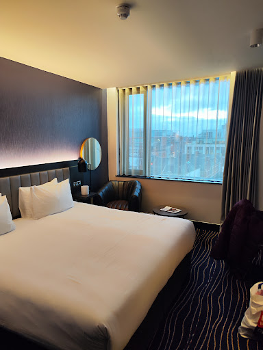 Recently stayed here with my teenager. |Would stay here again in a heartbeat ||Location was excellent as it was can be conveniently located next to a one of the more popular pizza places (Bambino), a convenience store (Spar), a few blocks away from my grocery store (Lidl) and countless restaurants and stores.||Service was exceptional from check-in, to the request for umbrellas at the front desk, to calling for a taxi, including a 4 AM early ride to the airport. If there was any slight negative, it was the concierge was new to Dublin and did not know as much as somebody who was a Dubliner.||Maid service was efficient, our room was cleaned quickly, and water refreshed in the mini fridge.||The room had a generous size bathroom, with a standing shower, a nice sink area and two different lights, one which could be used as a nightlight in the evening.||The room itself was OK for European room size, but nothing special. The bedding was comfortable, and the room was quiet. There was a decent size TV on the wall that had an adjustable angle, and had about 15 English speaking channels.||We did not choose to try any of the restaurants in the hotel so we canāt speak to that. The bartender downstairs was nice enough to give us ice...