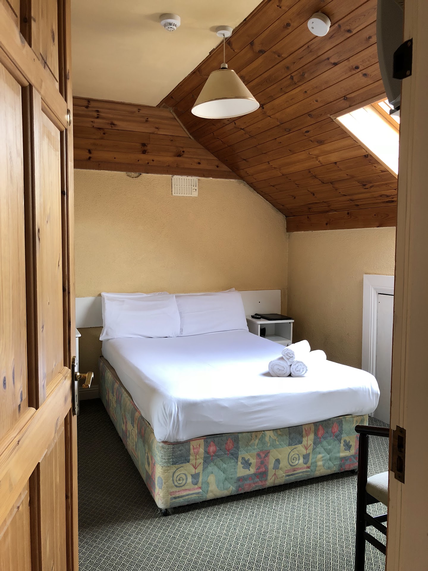 It was the Galway races and accommodation was hard to find but I was prepared to pay over the odds and got a double room with ensuite in a good location. It was expensive but I was prepared to pay for the location, assuming ( wrongly) that it might be a bit basic but we could at least get a nights sleep. We were disappointed.||The room we were shown was so bad that we decided we couldn't stay and had to face a long night drive back to Dublin and miss a day at the races.||We were shown a tiny attic room, a cupboard for an ensuite, a velux window ( hard to imagine how we'd get out if there was a fire), awful dated decor and a very strong smell of something chemical. We were so tired that we were tempted to stay but after a brief rest and a cup of tea we told the lady who said she just worked there that we couldn't stay. She wasn't surprised but said that the booking agency would have to deal with our refund. Later we discovered that the money was taken from our account a few days later and our booking agent referred our request to be refunded to the owner! Unbelievable treatment. ||Only 2 rooms...