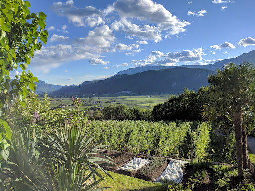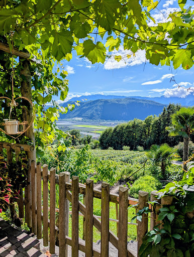 Read moreJe suis tombé sur cette adresse un peu par hasard car je n'arrivais pas à trouver un hébergement qui me plasait dans le Tyrol du sud sur mes sites préférés de réservation en ligne. Cela a été une des plus belles belles surprises de nos vacances de cet été. La propriétaire est vraiment gentille et accueillante même si nous avons eu un peu de mal à discuter (nous ne parlons ni allemand et ni italien) L'emplacement est absolument magnifique et très reposant. Le petit déjeuner est de qualité (confitures faites maison, un régal). Quel plaisir de pouvoir boire un verre de blanc du domaine (Un Kerner dans notre cas, cépage que nous ne connaissons pas en France) en contemplant la vue après avoir visité les alentours ! Nos filles âgées de 8 ans et 11 ans, se souviendront des poules et de la...