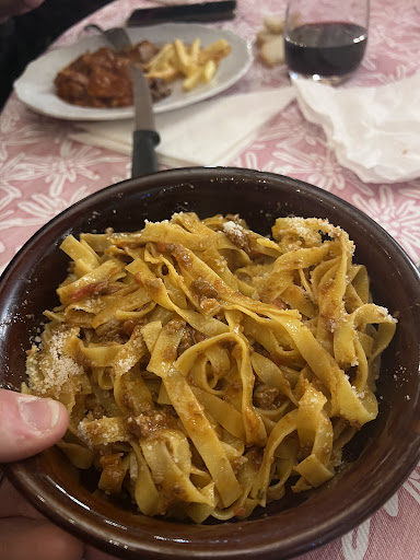 Read moreEravamo già stati prima del covid in questo ristorante e avevamo mangiato benissimo. Duole dire che il locale ha avuto un fortissimo peggioramento, cibo scarso, tavola apparecchiata a metà (non c'erano neanche i coltelli) chiesto il vino non hanno neanche portato un secondo bicchiere, l'acqua naturale portata in una caraffa (anti igienica al massimo per altro era sicuramente acqua del rubinetto in quanto a temperatura ambiente e riempita dalla cucina e per giunta ho visto che un cliente ha versato dal proprio bicchiere l'acqua nella caraffa per bere la coca cola avendo a disposizione un solo bicchiere, dico io ma poi quella caraffa quando verrà servita in un altro tavolo sarà sterilizzata se non altro? ho i miei dubbi) Abbiamo ordinato ravioli e sono arrivati tortelloni, tagliatelle al ragù ma del ragù quasi solo l'ombra e forse neanche quella, la tagliata è arrivata dopo oltre 45 minuti (e non solo al nostro tavolo ma a tutti ragione per la quale molti clienti hanno rinunciato a mangiarla) e in un piatto pieno di sangue visto che non era manco stato cambiato dopo la cottura patatine fritte due porzioni (ma erano una) riordinate hanno fritto quelle che vanno in forno (si vedeva la forma del taglio) e la sala non era neanche particolarmente piena da giustificare un ritardo simile. Inizialmente c'erano la titolare e una cameriera (poi sparita non so dove) in sostituzione è arrivato un cameriere per nulla gentile, chiamato per un'ordinazione ha risposto in maniera scocciata ARRIVO (non un semplice SONO SUBITO DA VOI) e invece di portare la nostra ordinazione in cucina (visti i tempi doveva essere almeno più immediato e celere) si è messo ad apparecchiare un altro tavolo. Bruttissima esperienza...