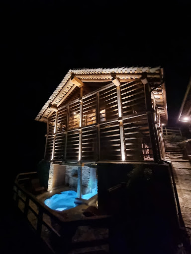 Il piano terra, originariamente adibito a stalla/cucina/salotto, è stato trasformato in due piscine (una interna ed una esterna), separate da un vetro, che conferisce un impressionante effetto ottico di continuità tra le due; oltre a queste è presente anche una sauna e un bagno. Al piano primo, salendo delle scale in legno, si accede a due camere: una matrimoniale con bagno privato e una seconda con quattro letti. Il secondo piano, che un tempo costituiva il fienile/area di lavoro, è divenuto il salone/cucina con terzo bagno, da una scalinata si accede ad un’ultima area mansardata, in cui è presente una camera con 2 letti.