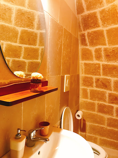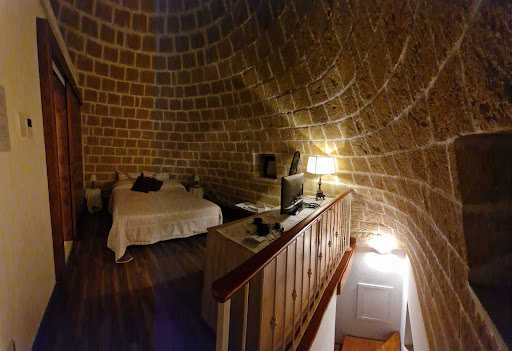 Read moreCon el COVID dominando, optamos por apartamentos y BB (donde casi siempre estábamos solos) en lugar de hoteles abarrotados de gente sin mascarilla. Visitando la región de los trulli, queríamos dormir en un espacio tan singular y, vista la oferta y la necesidad de disponer de estacionamiento, optamos por éste trullo, a 10' caminando del centro, que está unido a otro y comparte jardín. Aunque original y antiguo está totalmente renovado (de forma perfecta) lo que ofrece garantía para la estancia. El propietario (un joven muy simpático) se personó a los pocos minutos de llamarlo (vive al lado) y nos entregó llaves e informó de la vivienda. Hay algún espacio para estacionar cerca (50-100 m) y gratis en la calle (no demasiados porque casi todos son de otras casas y aunque estos trulli tienen zona privada interior de aparcamiento, la misma está ocupada por los vehículos de la familia). Todo nuevo y bien cuidado y decorado, entramos a una salita-cocina con un sofá mediano, mesa de comedor con sillas y cocina (frigorífico pequeño, tostador, cafetería tradicional, placa eléctrica, fregadero...), aparato de frío/calor y decoración agradable. Hay alimentos básicos para un desayuno y dulces caseros hechos por la dueña. Por la escalera (estrecha, pero fácil) se sube a la joya de la casa: el techo en forma de cono del trullo, bajo el que hay una cama doble, con buenas sábanas y colchón, 2 mesillas, cómoda, TV, ventana y aparato frío/calor. Una puerta corredera (que funciona bien) da paso a un baño que comparte todavía el techo en cono, donde hay un lavabo y un inodoro (modernos) y una gran ducha con excelente agua caliente, mampara y calientatoallas, más secador. Toallas muy buenas. Todo impecable y muy limpio. A destacar el gel (rellenable) por su delicado aroma a hierbas (tanto nos gustó que nuestro amabilísimo anfitrión nos regaló un repuesto como recuerdo). No hay TV en la salita, solo en el dormitorio. Precio más alto que los demás trulli de la zona, pero merece la pena pues está perfectamente restaurado. Un magnífico ejemplo de trullo, si bien su coste algo elevado, perjudica la relación calidad-precio. Totalmente...
