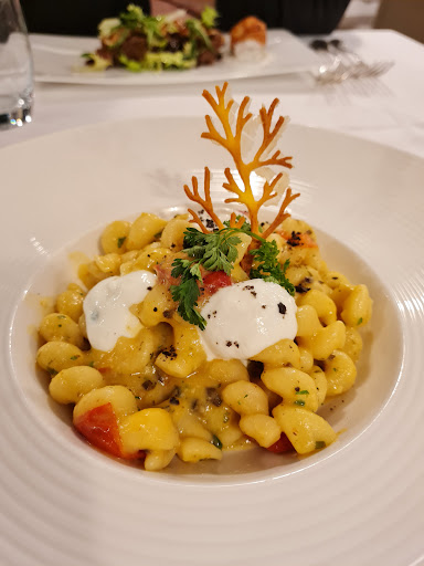 Cena: Il ristorante dell'hotel merita molto, sia per l'estetica, elegante e curato, che per il cibo, delizioso. Il mio pacchetto prevedeva una cena di due portate di cui una doveva essere necessariamente il Dessert, ciò non negava però la possibilità di poter aggiungere una terza portata, pagando. Abbiamo scelto un Primo, intrecci di pasta artigianali con crema di Datterino giallo, e un Secondo, steak di Vitello. Il Primo è stato veramente ottimo, la porzione a primo impatto sembrava un pò piccola, ma ero sazia al termine. Lo steak di Vitello invece, era un pò poco, ma comunque buonissimo. Il dolce era un Bocconotto alla Crema con Amarena, delizioso. Servizio veloce, efficiente con Camerieri molto professionali.
