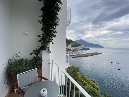 Visited Miramalfi in May of 2023 and it was ful of wonderful details and moments we enjoyed. We ferried in from Positano and Amalfi was the last leg of our trip to the Amalfi Coast. We were immediately fetched by the their shuttle and taken the short trip up to the hotel. Note that we walked the street/sidewalk to town and back several times. It's a typically Amalfi-esq hike uphill but manageable. From the moment we were met, every single person at Miramalfi could not have been kinder and more attentive. Our room wasn't ready so we went straight to the beach club which is one of the most amazing places with its multiple sun areas, extra deep salt water pool. (no it's not heated but still wonderful.) and ladder/stairs into the ocean. Thankfully, there is an elevator to access the club because its perched very far down the cliff. The staff at the beach club, including, Allesandro, Justin and Andrea, (Hope I got those right!) were wonderful and never missed a beat. People in Italy seem to love snacks with their drinks and while we tried to pass on the potatoe chips with only a partial success rate, I was incapable of not eating massive amounts of their incredibly fresh olives. Oh, to have olives like that at home! I booked late so we were in room 66 which was the lowest floor at the end of the hall and was incredibly private and despite being down low still afforded an amazing view of town and the water. Every room at the hotel is surrounded by vines of confederate jasmine so if you leave your slider open, you walk in to it's beautiful smell hitting you in the face. We were welcomed with a bottle of persecco and fresh strawberries. The room was also equipped with a capsule espresso maker (Smeg/Lavazza) that we used every day. The bathroom was typical italy with a small tub but strong shower pressure. Breakfast was exceptional with a combination of buffet and off the menu items included with our stay. We enjoyed the lobby bar and the lower Azure lounge for coctails and had some snacks but sadly were unable to dine at Donna Emma for dinner. The hotel concierge helped us with some bookings and Erika at Donna Emma gave us some great recommendations including the short walk to Atrani which is lovely and has a small museum dedicated to Maurits Escher. Of the three nights we were at the hotel, we had one stormy day and I have to admit, I loved it, I waited for our room to be cleaned and wandered up to the lobby sitting looking out at the clouds and reading a book. The hotel never seemed very crowded and I enjoyed how relaxing it felt. We were in Italy for 11 amazing days but this hotel will always be the highpoint. If you are able to visit, I cannot...