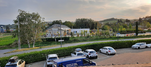 The address given when typed into our usually reliable SATNAV took us everywhere but the hotel. It is actually on an 'industrial' estate opposite a glass factory. On arrival the girl seemed initially quite grumpy but when we saw her the next morning at breakfast making coffee, clearing tables as well as goining backwards and forwards to the reception desk this explained her manner......she was simply tired. Parking is plentiful, the rooms are cool (great air con) the breakfast was excellent with lots of choice and the coffees were made to order - really good. Our room had an ensuite shower with loo and bidet but the loo was squashed into the corner and was quite cramped. The room had a balcony which had a view of the hills and motorway but with the windows closed the room was very quiet and peaceful. It was a little drive into town to get an evening meal. Room had a fridge / minibar and free wifi had a...