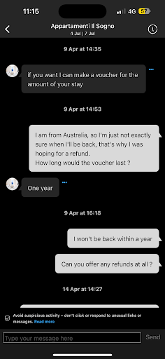 Read moreTerrible communication and don't follow through with what they offer you.. I had this accomodation booked for months and I've recently been moved from the waitlist for a surgery that I've been waiting for for about 2 years and when I requested a refund they said all they could do was a voucher however I live in Australia. After finally deciding to post pone our trip and decided to claim the voucher they no longer reply to any of my messages. I'm very disappointed with this hotel and would encourage you to definitely make sure you are wanting to travel on the days you book for as there is literally no flexibility and they say they'll offer you a voucher but don't actually reply when you say yes. I also messaged them back at the start of April which still allowed 3 months notice, and it's there summer so they will 100% be able to...