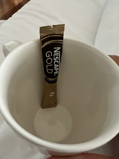 We arrived around 1:30 and were shown to our room. The first thing I noticed was the musty smell of the room and the cheap laminate floors. The cheap wall hair dryer with a whisper of air and NescafĂŠ instant coffee rounded out the amenities of the room.