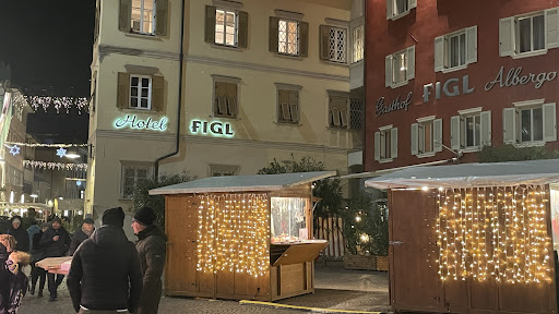 Read moreHotel Figl nel centro di Bolzano (Bozen) è un hotel di classe mondiale. Abbiamo appreso dallo staff che c'è stato un hotel in questo sito dal 13° secolo e quello attuale è stato recentemente ristrutturato per tutti i comfort di casa. La nostra camera si affacciava sulla piazza (Piazzo del Grano) ed era molto spaziosa e pulita. I pannelli in legno erano molto suggestivi e l'intero hotel è molto ben arredato e bellissimo. Mia moglie ed io siamo stati qui 2 notti durante il mercatino di Natale (2022) e ci siamo divertiti molto. Il personale dell'hotel è molto ben informato sulla zona circostante e parla più lingue (italiano, inglese e tedesco). L'hotel è vicino a tutto nel centro della città e molto vicino alla stazione dei treni. Puoi facilmente raggiungere a piedi la maggior parte delle attrazioni e ci sono autobus che possono portarti fino alle Dolomiti e ai castelli della zona se vuoi viaggiare oltre il centro città. Assicurati di fare colazione nel ristorante e ammirare le caratteristiche scolpite nei pannelli della sala da pranzo. In estate puoi anche mangiare fuori in piazza e guardare il mondo che passa. Consigliamo vivamente questo incantevole hotel e ritorneremo sicuramente con il clima più mite. -----inglese--------- Hotel Figl in the center of Bolzano (Bozen) is a world class hotel. We learned from the staff that there has been a hotel on this site since the 13th century and the current one has recently been refurbished for all the comforts of home. Our room overlooked the square (Piazzo del Grano) and was very spacious and clean. The wood paneling was very impressive and the whole hotel is very well decorated and beautiful. My wife and I stayed here 2 nights during the Christmas market (2022) and had a blast. The hotel staff is very knowledgeable about the surrounding area and speaks multiple languages (Italian, English and German). The hotel is close to everything in the city center and very close to the train station. You can easily walk to most attractions and there are buses that can take you up into the Dolomites and to castles in the area if you want to travel beyond the city centre. Be sure to have breakfast in the restaurant and admire the carved features in the dining room panels. In the summer you can also eat outside in the square and watch the world go by. We highly recommend this lovely hotel and will certainly be returning in...