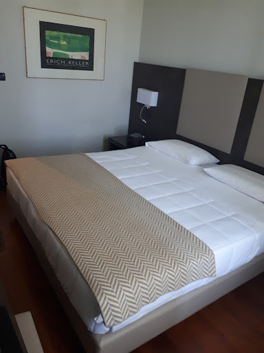In one word : bad. We were looking for a simple but comfortable place to stay overnight, before taking a flight early in the morning from Torino Airport. Let's get it straight : location is perfect (5' drive from the airport's departures) although one entrance is hard to find (next to the Burger King restaurant), car parking is secured onsite with protection from rain and bed is comfortable. That's it, for the rest it has just been disappointment after disappointment: Service was beyond terrible : slow at the reception (a young woman being alone), other customers almost yelling as their requests were not heard (I do not blame anyone, but I noticed it quite a few times on less than 24h spent there, so I suspect some management issues). Our room did not come with 2 sets of towels even though we booked it for 2 people (through Booking.com), frustrating when in the bathroom you are just looking for spare towels. Reception could get it for us fortunately. Elevator looked like it came from Middle Age. We called it the first time with our luggage on the ground floor, it took 5' to come and we instantly regretted it as soon as we got in. It was clunky and slow, we decided to use the stairs afterwards. Cleanliness of the room could have been better, as I noticed some hair on the mattress underneath the bedsheets. This is not up to a 4* hotel standards. Overall, the place looked like it was "empty". Decoration was very cold and strange, hotel is definitely in need of a fresh coat of paint and some modern renovation. Lastly, a completely ABSURD situation which made our short trip even worse. At around 9 PM, the fire alarm went off in the whole building. Thinking there was a fire, we walked down the stairs, leaving our stuff behind in the room. When coming out from the main entrance, no one was there. We waited 5' - some customers also went out, being lost and waiting for instructions. Then 10' passed, the alarm was still on and customers/waiters from the main restaurant (left aisle) were still acting as normal, staying inside and enjoying their meal. I was desperately trying to find someone from the staff, to ask what was going on. After 15', we saw people from the hotel walking inside the reception. Apparently, they did not know how to turn the alarm off! The young receptionist was welcoming guests in this blaring atmosphere. How did we know this was just an alarm malfunction and not real smoke? After 30', the alarm finally went off. But no one from the hotel came to apologize or declare we could go back safely to our room, with an explanation of the underlying reason the alarm went off. This is just a dangerous behavior towards anyone in the hotel, including the...