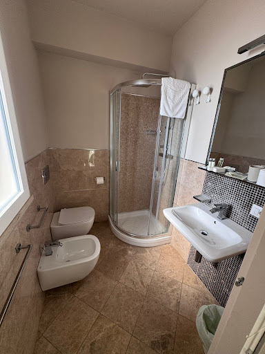Read moreL'hotel è molto gradevole, si vede che è di recente costruzione o ristrutturazione, la posizione è fantastica. Molto pulito, letto comodissimo e stanza arredata molto bene, pecca tanto sui servizi e sul personale di accoglienza. Abbiamo trovato dell'acqua nel frigobar, molto gradita al nostro arrivo ma i giorni successivi non è stata rifornita, la stanza non ha sufficienti prese elettriche, suggerirei l'installazione di almeno due prese ai lati del letto, perché al giorno d'oggi si ha tutti almeno 2 dispositivi a testa da ricaricare, abbiamo contato in tutto 4 prese tra camera e bagno (staccando la TV). La donna di servizio è stata più presente e interessata a noi del resto del personale, che a quanto abbiamo potuto vedere vanta due membri, il che non sarebbe un problema se non che al checkout entro le 10.00 non sapevamo a chi lasciare le chiavi della stanza, su consiglio della donna di servizio le abbiamo lasciate sul bancone "tanto il direttore non arriva prima delle 13.00 di solito".