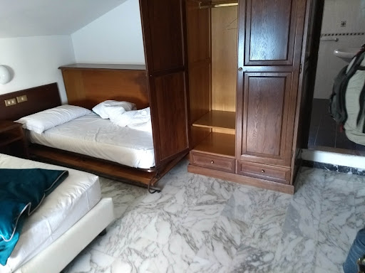 Read moreLuci e tante ombre .. 4 stelle di incoraggiamento perchè una struttura così bella, affascinante, che richiama grandi feste e con una vista del genere sul verdissimo lago non può andare persa. Certo 4 stelle alle camere dei piani superiori, che ho visto in foto (ma attenzione alla rumorosissima strada di sampietrini quando passano auto a tutta velocità!). Per quelle sotto la veranda sono sufficienti 2 stelle, la mia era a metà strada tra il dismesso (per lo stato manutentivo) e "la stiamo arredando con quel che c'è" (visibilmente disadorna, armadio non appoggiato al muro, mobili buttati là senza alcuna logica tipo una branda come terzo letto ed una mensola wengè (in un albergo Art Nouveau? ma dai!?) ed un tavolino da bar scadente con le zampe di ferro e le macchie di ferro da stiro abbinato a due poltroncine belline belline ...). Ma guardando fuori dalla porta finestra (senza abbassare lo sguardo sulla discarica edile che c'è sotto) si sopporta meglio. Ovviamente tali camere sono silenziosissime - a prova di matrimonio - e la vista è emozionante a qualunque ora. Il particolare del portachiavi di legno che si inserisce in un applique anch'essa di legno per attivare la luce è un'opera d'arte. Ma l'emozione si spegne un po' quando togliendo la chiave l'applique mi viene dietro perchè è mezza scardinata dal muro... e si potrebbe andare avanti ancora ... Il bagno, minuscolo e datato ma funzionante avrebbe bisogno delle pulizie di Natale, non di quelle frettolose giornaliere, e di una bella manutenzione (e già che ci siamo, rifacciamolo). Letto e biancheria invece perfetti e cambiati ogni giorno.