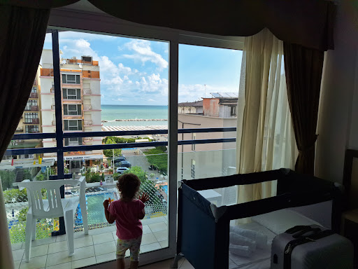 Read moreNon volevamo più venire via! Meravigliosa esperienza! Siamo stati viziati dall'arrivo fino alla fine! Bella la struttura. Offerta all inclusive con rapporto qualità prezzo imbattibile! Pulizia e comfort in ogni ambito. Pulita la camera, fornita di aria condizionata, cassettina di sicurezza, TV e minifrigo. Tovaglie cambiate ogni giorno che profumano di ammorbidente! Camera con vista mare con balconcino con filo per stendere, sedioline e tavolino anche per fare aperitivo. Bagno nuovo, doccia con getto potente e acqua calda continua. Sala pranzo grande e ben organizzata. Cibo fresco, abbondante e vario. Vengono incontro davvero ad ogni esigenza. Ci sono cibi integrali, gallette di riso, alternative vegetali e alternative per diabetici. Dalla colazione alla cena, nel menu propongono sempre qualcosa di più goloso, di tipico, di carne o pesce ma anche qualcosa di più leggero, spesso anche vegan o vegetariano. Ho mangiato l'hamburger di ceci più buono del mondo, fatto a mano, non comprato! Ma anche uno sgombro al cartoccio leggerissimo e una semplice linguina alla bella napoli che mi ha ricordato dei sapori di quando ero piccola! Il buffet è protetto da vetro e ci sono gli operatori che ti servono quello che chiedi. Il pesce sempre fresco, ben cucinato. Bellissima idea la cena romagnola e la cena di gala! Area piscina pulita e possibilità di fare idromassaggio quando si vuole. Area esterna con comodi divanetti. Abbiamo visto la partita della nazionale nella hall tutti distanziati e comodi. Personale di sala gentilissimo e sempre con accortezze al cliente! Al mattino ti portavano già la scelta di caffè solito, come se ti conoscessero ormai da anni, senza doverglielo neanche ricordare! Correvano subito a riparare eventuali errori o mancanze. Davvero organizzati e veloci! Le ragazze delle pulizie in camera sempre gentili, veloci e precise. Lasciavano tutto pulito in ordine. Accoglienza fantastica con presente firmato "Ambasciatori". Parcheggio convenzionato comodo a piedi e ben organizzato. Spiagge convenzionate che sono villaggi di attrazioni, offerte di attività e benessere! La posizione dell'hotel è strategica. A due passi dalla spiaggia, circondata da attività che vendevano qualsiasi necessità, vicino a farmacie e bancomat. Vicinissimo ad un delle fermate dei trenini per Cattolica e Gradara. A pochi km dal centro e dalla strada principale dello shopping. Lo sto consigliando a tutti e spero davvero di tornarci il prossimo anno per una vacanza più lunga di una...