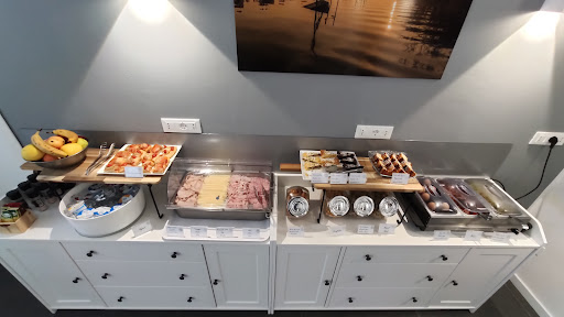 Das Frühstück ist wie auf den Fotos zu sehen. Es gibt Brötchen mit Honig, Nussnugataufstrich oder auch Wust und Käse. Yoghurt natur und als gesüßte Varianten. Obst, Croissants, gekochte Eier, Speck, und gegrillte Bohnen mit Tomate gab es auch. Müsli wird ausschließlich in gesüßten Varianten angeboten. Bei den Getränken gab es ein paar Säfte sowie Wasser, Tee und Kaffee. Leider ist der Kaffee aus einem Vollautomaten mit Milchpulver. Finde ich für Italien persönlich echt Schade.