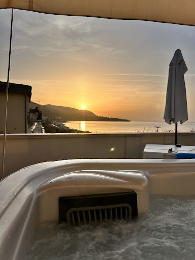 We spent 2 nights here last week & had a superb experience. We chose the superior suite with the hot tub on the terrace & it was worth every penny. The terrace was spacious with 2 loungers next to the hot tub with views over the beach & busy street (good for people watching). ||Check in was so welcoming from Chelsea, the room was spacious & high quality, the shower was superb & a nice gift of wine was there for us to drink. Breakfast on the terrace was nice & there was plenty of choice. The only recommendation I would offer is that some of the savoury items could have been served warm. ||We ate dinner at the family restaurant downstairs - Al Gabbiano where we were given 15% discount on showing our room key. The food & service there was very good.||Would stay here again in a heart beat. What a great place to stay in the thick...