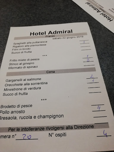 Read moreStruttura situata in posizione strategica e perfetta, a pochi passi dal centro, a pochissimi metri dalla pineta e dal mare. Spazio esterno ben tenuto e personale molto gentile . Camere discretamente grandi,presenza di una sola presa, non ho gradito ( ma per piacere personale) la doccia senza il piatto e con la tendina! Cibi buoni, ma non eccelsi da poterseli ricordare. Però Porzioni buone. Noi abbiamo soggiornato all'Hotel Admiral (che appartiene allo stesso cortile dell'Hotel adiacente di cui ora non ricordo il nome)... E per ogni pasto (per noi pensione completa)dovevamo spostarci dall'hotel Admiral alla sala di quello di fianco (con scale al primo piano) ma avendo neonato con me e quindi passeggino,ad ogni pasto ero costretta a portare su il passeggino a mano, senza poter usufruire dell'ascensore..! Troppo scomodo e non capisco il perché.... Non l'ho ricondotto ad una necessità per Covid.... Ma può essere.. Ad ogni modo, a mio avviso, troppo scomodo! Per soggiorno di qualche giorno può andare bene se si è sportivi, rapporto qualità prezzo giusto a ciò che viene...