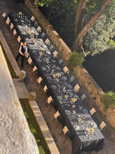 For the welcome dinner, Daniele connected me with Roberto. The initial draft menu that was proposed by Roberto and his team was fantastic. As the groom is a graduate of the Culinary Institute of America, New York; many of the wedding guests were as well. It was a group of with many talented chefs and restaurant owners. The entire wedding group is very food and wine oriented. The food, wine, service and setting/atmosphere of the welcome dinner was absolutely phenomenal! • Food -- exceeded our high expectations. We are just back in the USA after having spent a month traveling throughout Italy and some of our very favorite food anywhere was the welcome dinner. The carbonara with truffles was the best carbonara I have ever had. My first trip to Rome was in 1991 and I have enjoyed a lot of carbonara over the last 34 years. Kudos to the culinary team. • Wine -- Roberto and team were great in working with us in sharing extensive wine options. The wine (especially the Marchesi Mazzei Siepi 2019) were all outstanding. We pre-purchased many bottles of wine before the welcome dinner, but Roberto was kind enough to have extra on reserve for us. By the end of the wonderful meal, I believe we finished every bottle of the extra wine especially the Siepi. That was our absolute favorite wine for the entire trip. • Service -- was impeccable from start to finish; exceptionally well done. • Atmosphere/ambience -- outside in a beautiful setting with a stunning view of Colle di Val d’Elsa. Flowers, table linens, place settings ... it was all so beautifully done. It was a somewhat cool, early Oct evening and Roberto and team (on a Sunday) somehow managed to purchase enough blankets for the group.