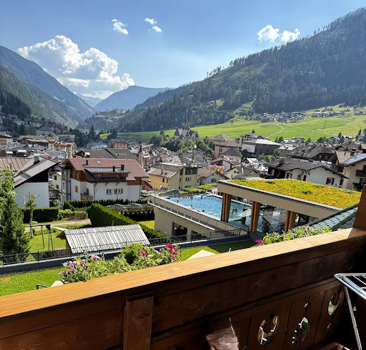 This hotel is very modern, has a local typical Tyrol design & touch, it is clean and well organized. Reception is super friendly. The hotel cuisine and dishes taste delicious and are diverse, so that one can find always a meal for oneself. On one evening there was even Tirol motto during the dinner. For kids there is always a standard buffet with noodles and ragout. In the afternoon there is also a very rich snack buffet with cakes, yoghurts, fruits, and sandwiches. ||It is a paradise for kids, since it has an indoor & outdoor playgrounds, "trampoline castle", pools for kids and for adults. The ski school is closely organized with the hotel and the children are picked up from the hotel and brought back to the hotel after lunch, so that parents do not have to take care of any ski logistics. The animators, especially Viola & Andrea, were very well organized, super nice to kids, communicative, and easy going to arrange any individual settings. In the evening there was always an entertainment program for kids (e.g. dancing, animation, quizzes, films). The animators also took care of the indoor playground and offered some activities for kids in the afternoon. Hotel even offers buggies for carrying babies, however for extra fee, which was 10€ per day. ||The hotel is located middle in the city of Moena and is close to the hills. It has an own garage for guests' cars. The ski arena Alpe Lusia is great for all ski levels (basic to advanced) and especially for kids. The ski slopes of san Pellegrino are super picturesque and worth seeing. ||Three things I would recommend to the hotel to improve: 1) install more hooks in the bathrooms and toilets to hang up the towels. 2) Improve WiFi coverage and signal strength in the rooms 3) make the rental price for a buggy...